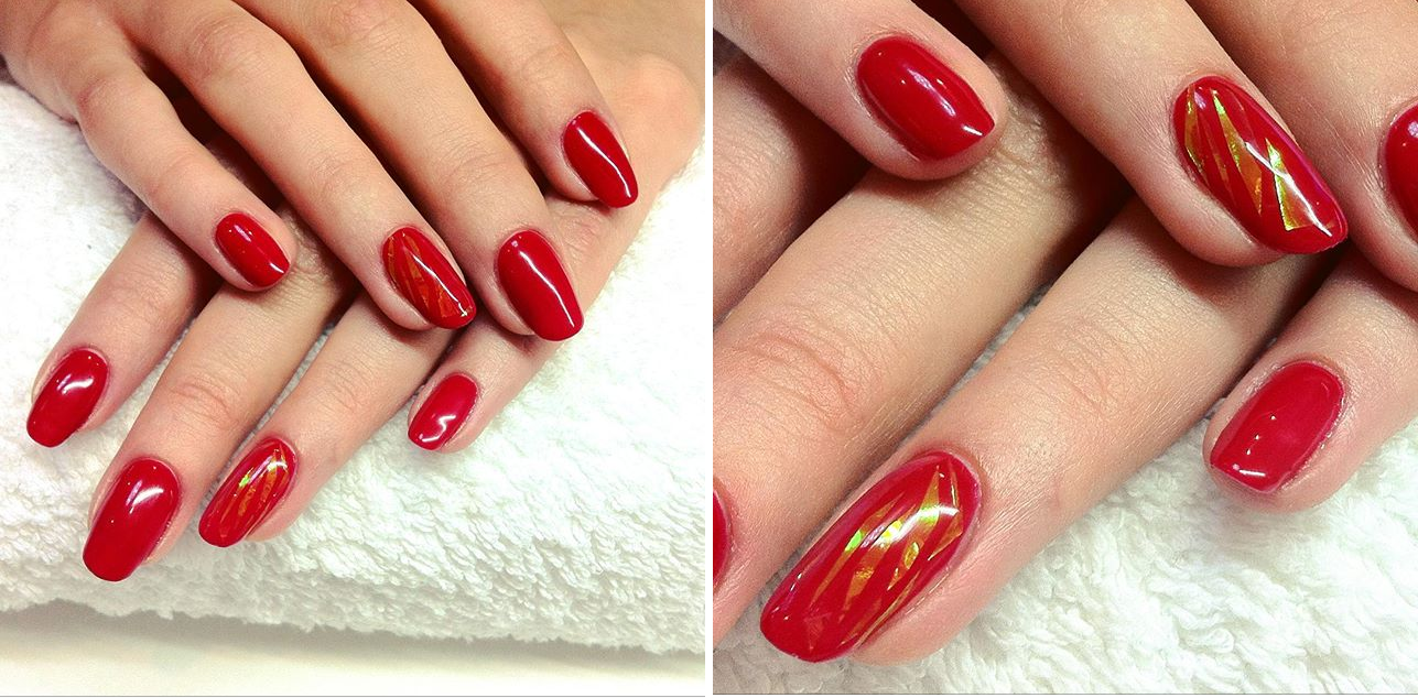 Выберите насыщенные цвета лака, чтобы создать контраст с эффектом битого стекла.