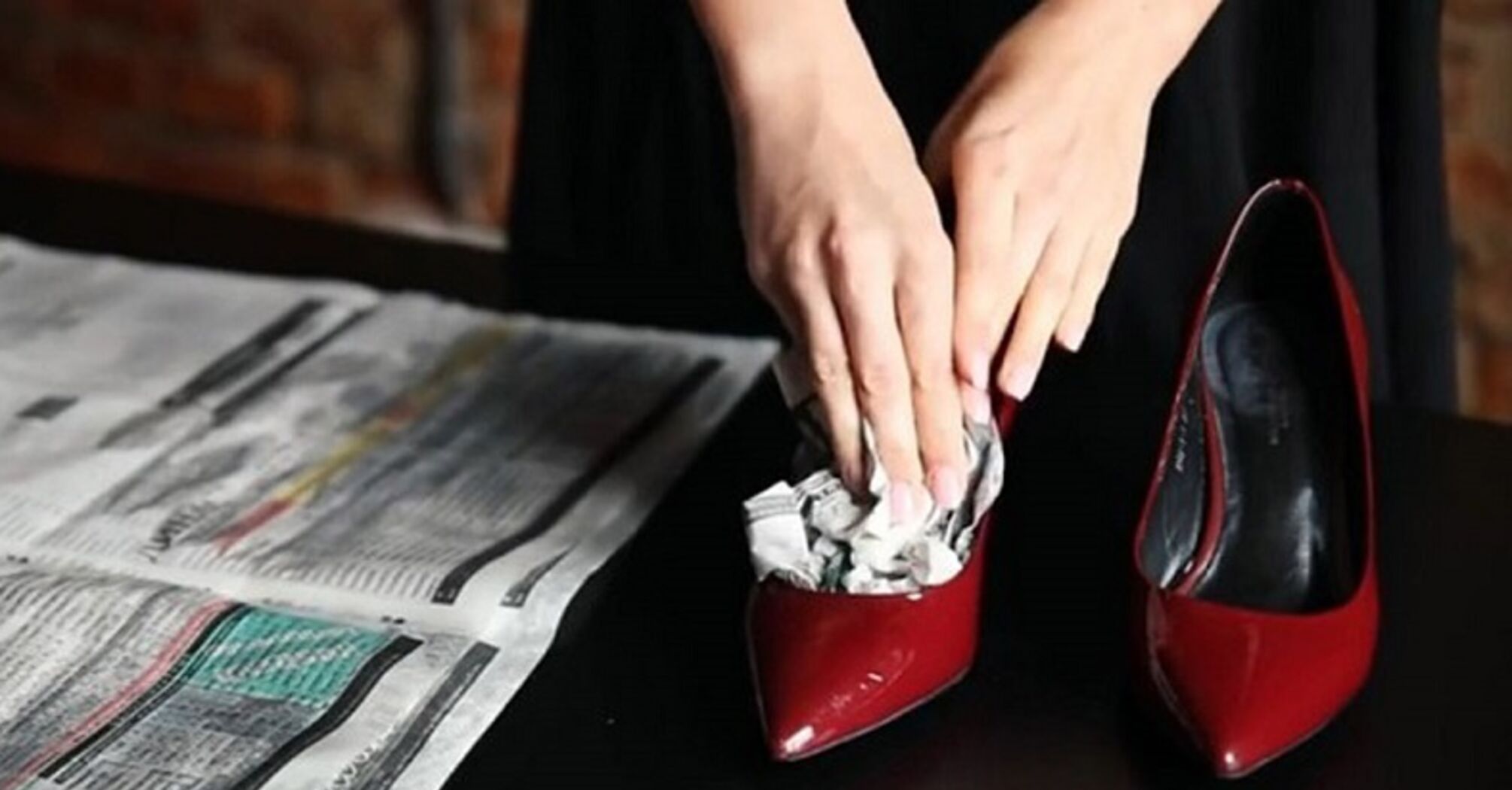 Вставьте внутрь ботильонов пачку газет или салфеток, смоченных водой, и дайте им высохнуть на протяжении нескольких часов.