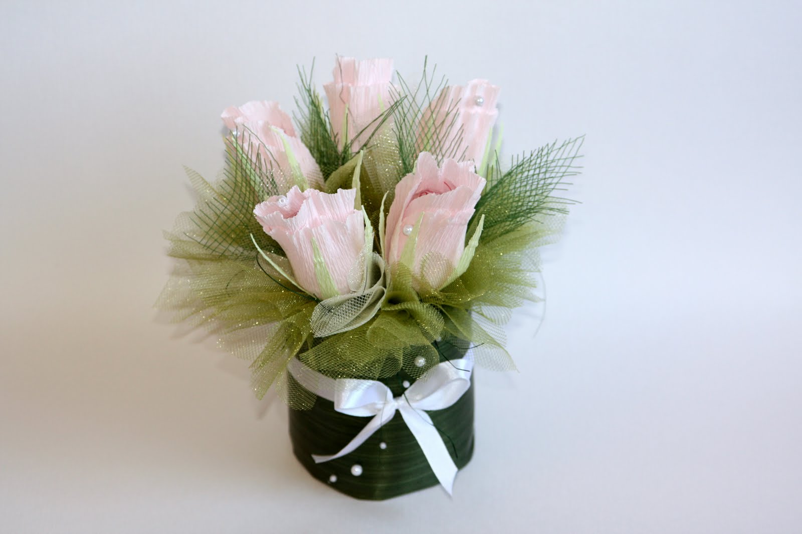 Используйте разноцветную флористическую ленту для обертывания конфет и создания красивых бантиков.
