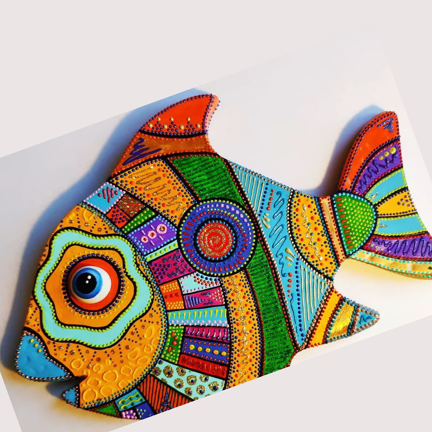 Как сделать декоративную рыбу из картона (точечная роспись, картонаж)