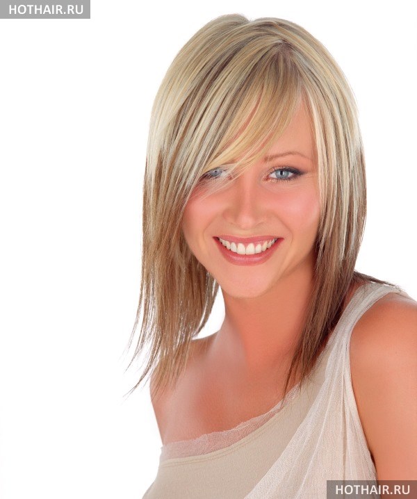 Варианты стрижек средней длины: объемная прическа без челки для тонких волос