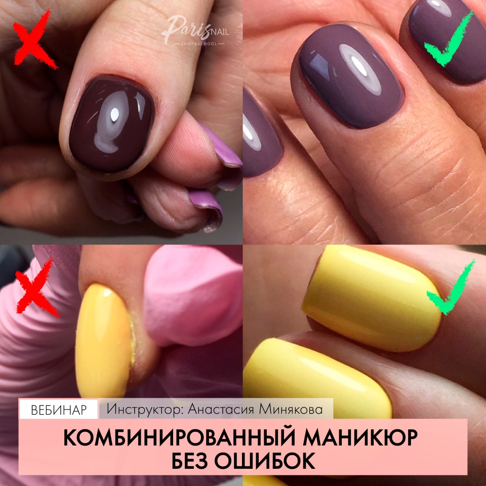 Не забывайте о правильном уходе за ногтями - комбинированный маникюр будет выглядеть еще эффектнее на ухоженных и здоровых ногтях.