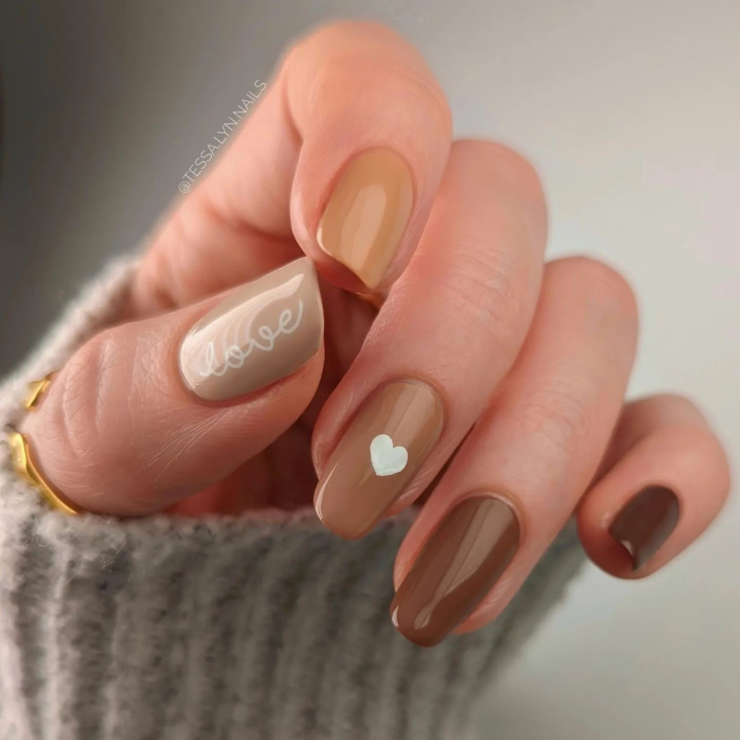 Если вы предпочитаете классический маникюр, нанесите розовую основу и украсьте один ноготь слегка глянцевым коричневым лаком.